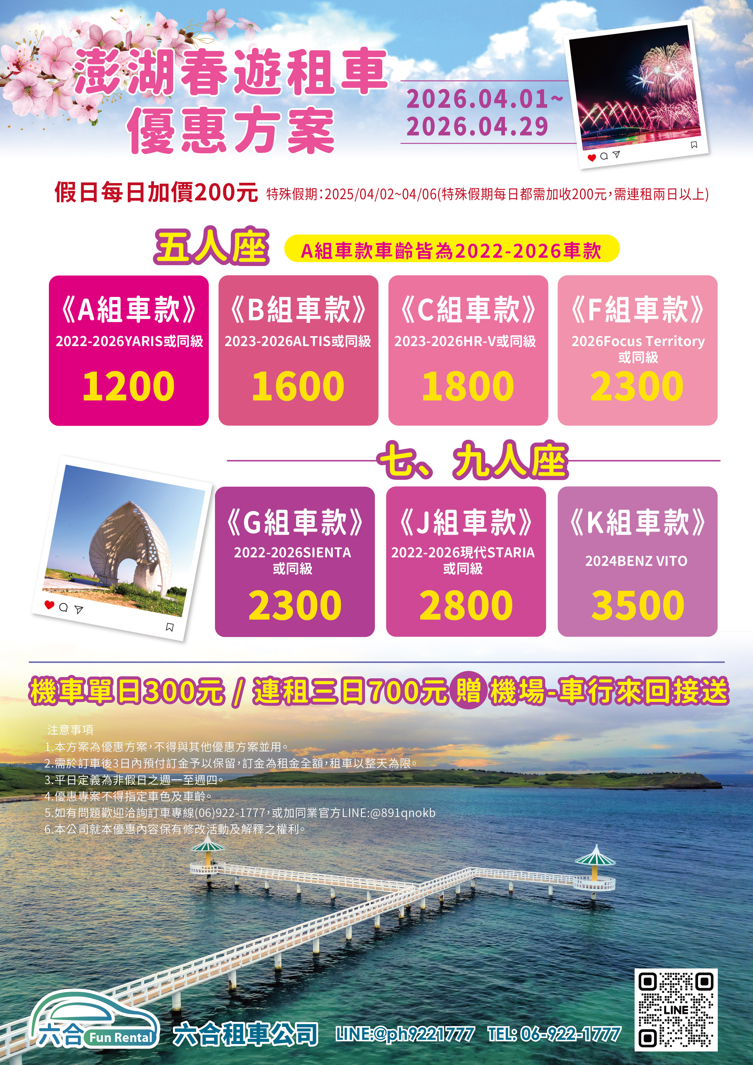 3、若有預約訂車,取車時可安排馬公市區內短程接送。